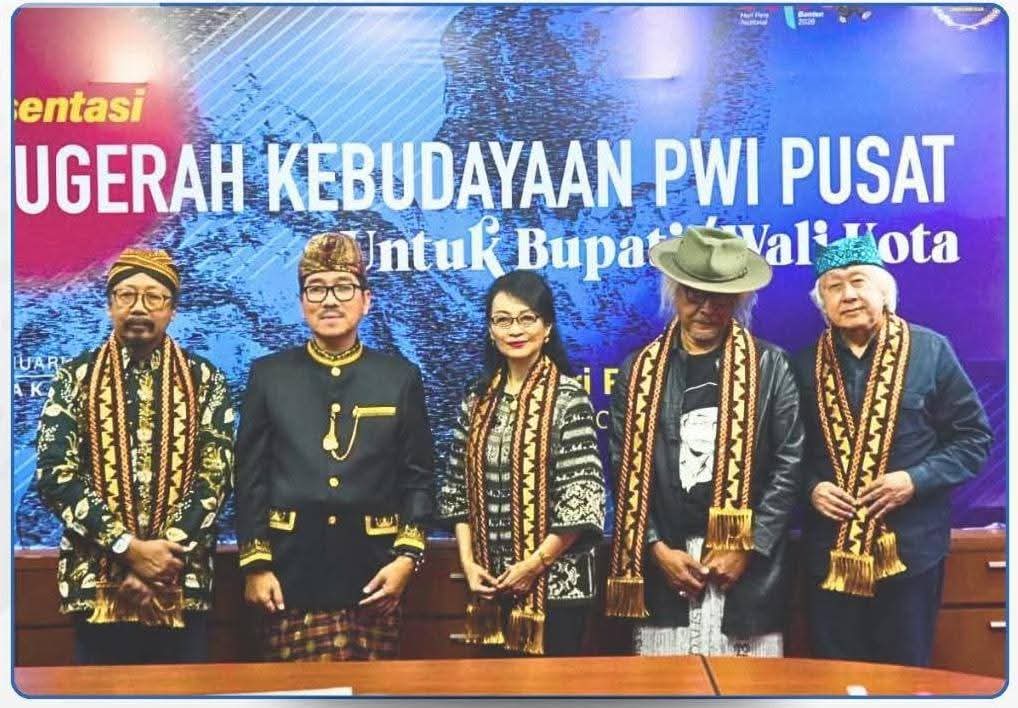 Jakarta(GN) – Bupati Lampung Utara, Dr. Ir. Hamartoni Ahadis, M.Si., memaparkan kekayaan budaya daerah berupa kesenian tradisional Cangget Bakha pada ajang Anugerah Kebudayaan Persatuan Wartawan Indonesia (PWI) Pusat Tahun 2026, yang digelar di Hall Gedung Dewan Pers, Jakarta, Jumat (9/1/2026).