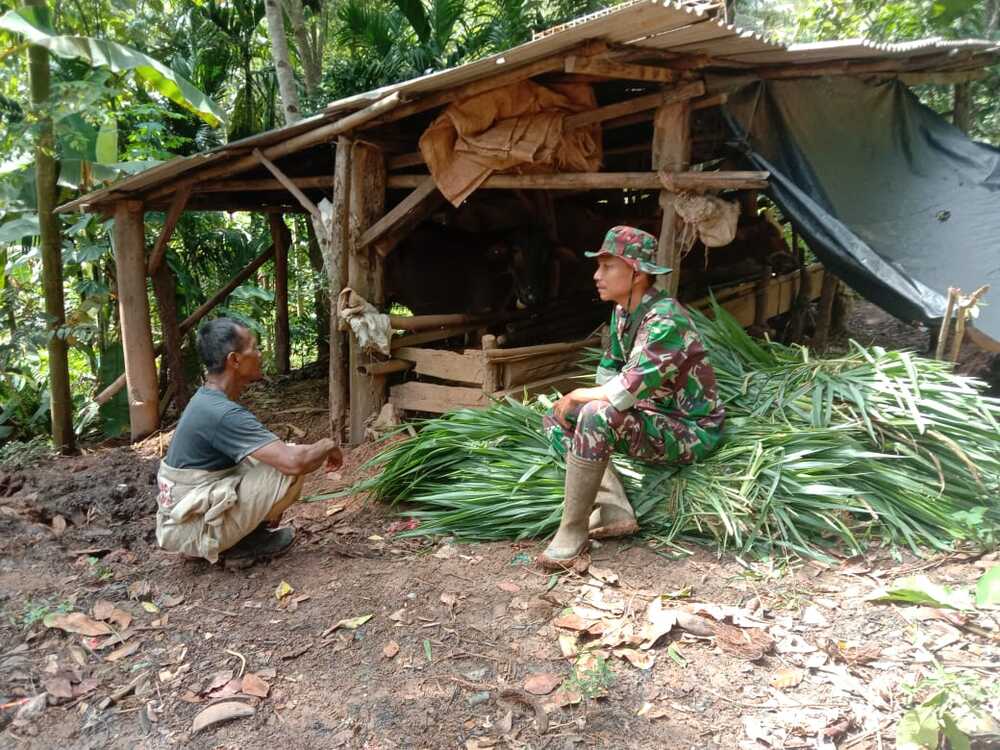 Hal ini sengaja dilakukan personel satgas TMMD dengan menyempatkan diri untuk mendekati warga peternak sapi untuk mengetahui sejauh mana perkembangan budidaya sapi yang dimilikinya.