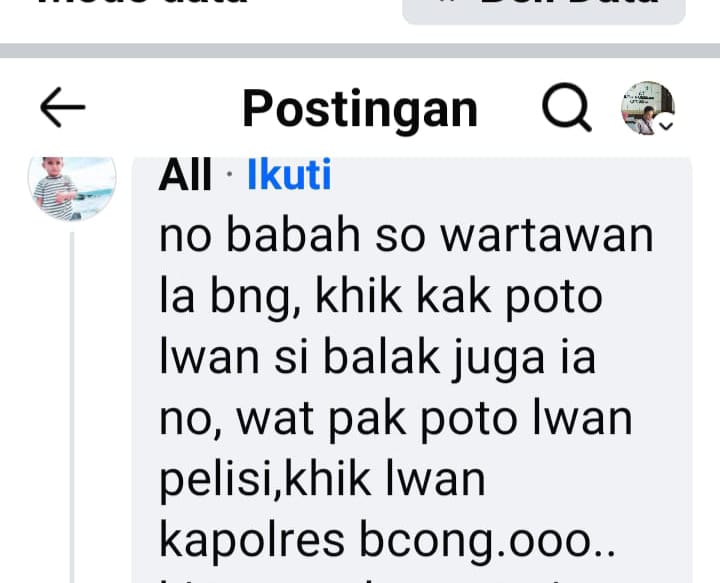 Akun Media Sosial Facebook ALL tersebut membuat komentar behasa Lampung, Babah so jamma media hutang khanno cutik na mak sebayakh,”yang artinya, ngomongnya orang Media hutang gitu dekit tidak mau bayar.