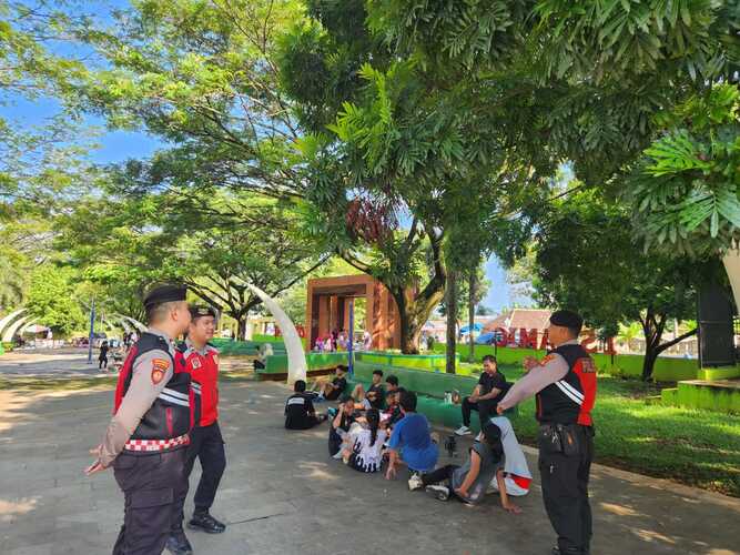 Dalam kegiatan tersebut, petugas memberikan himbauan kamtibmas secara humanis kepada para pengunjung agar senantiasa menjaga keamanan dan ketertiban selama beraktivitas.