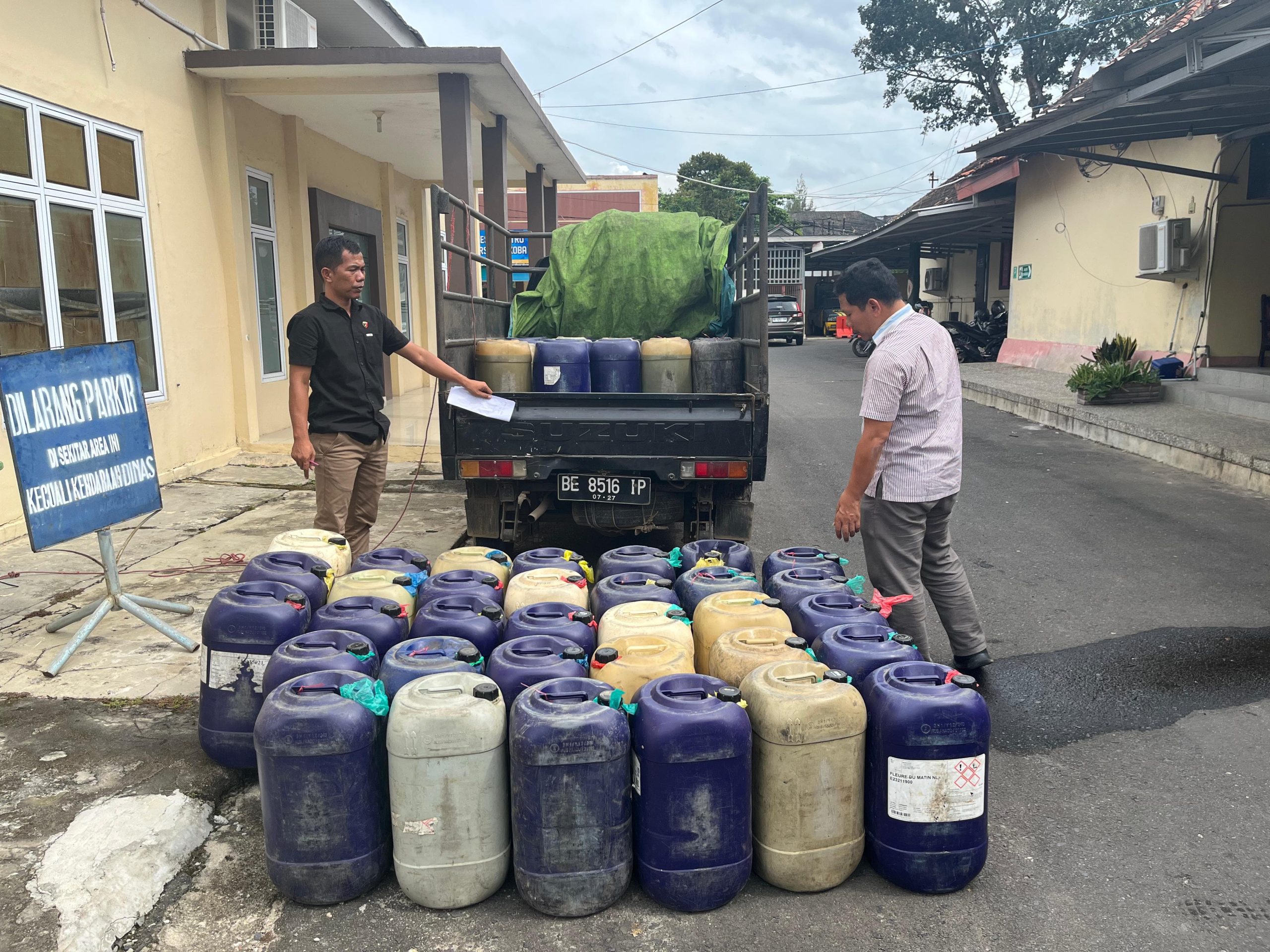 Dari hasil pemeriksaan awal, kedua pelaku menggunakan satu unit mobil pick up Suzuki Carry warna hitam dengan nomor polisi BE 8516 IP untuk mengangkut BBM tersebut. Dalam kendaraan itu, petugas menemukan sebanyak 55 derigen ukuran 35 liter yang berisi pertalite diduga oplosan.