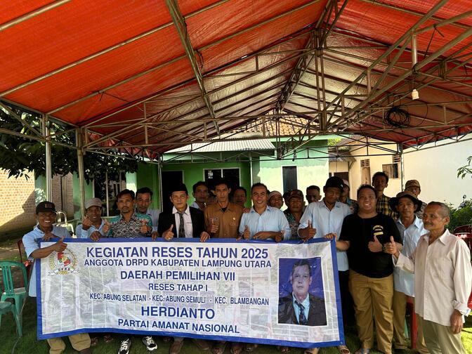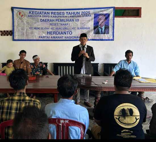 Lampung Utara (GN)- Guna menyerap aspirasi masyarakat Lampung Utara, khususnya di Daerah Pemilihan (Dapil) VII, yang meliputi kecamatan Abung Selatan, Abung Semuli, dan Blambangan pagar. Anggota DPRD Lampung Utara, Herdianto menggelar Reses Tahap I. Selasa (15/4/2025).