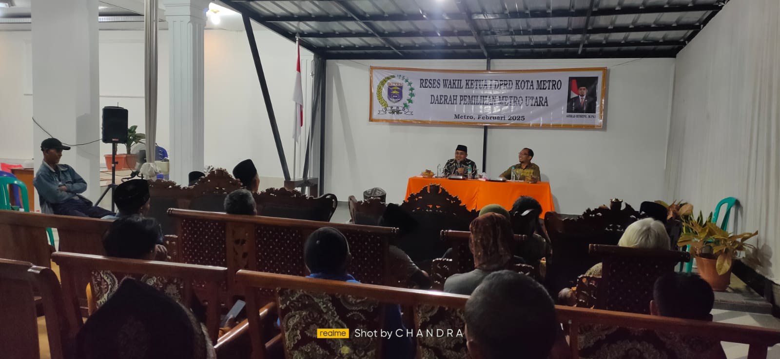 Metro (GN) – Wakil Ketua I, Ahmad Khuseini menggelar Reses dalam rangka menyerap Aspirasi Masyarakat, Reses bertempat dikediaman Rumah Ahmad Kuseini Jl Pattimura Gang Ambon Kelurahan Banjarsari Kecamatan Metro Utara Sabtu malam 15/2/2025.