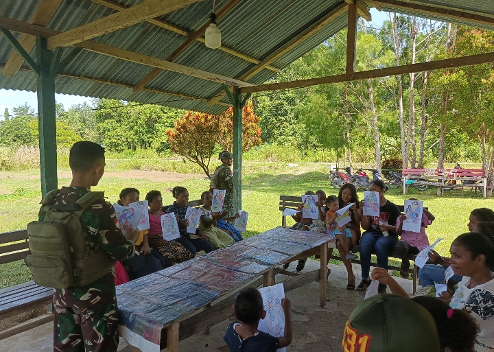 Terlihat kebahagian Owen (8 thn) salah seorang anak yang turut belajar di Pos Yetti merasa senang. Kegembiran hadir dan muncul semangat kembali terlihat dari curahan mata dan tawa anak – anak Papua. “Kita senang belajar bersama bapak TNI, ” ujarnya.